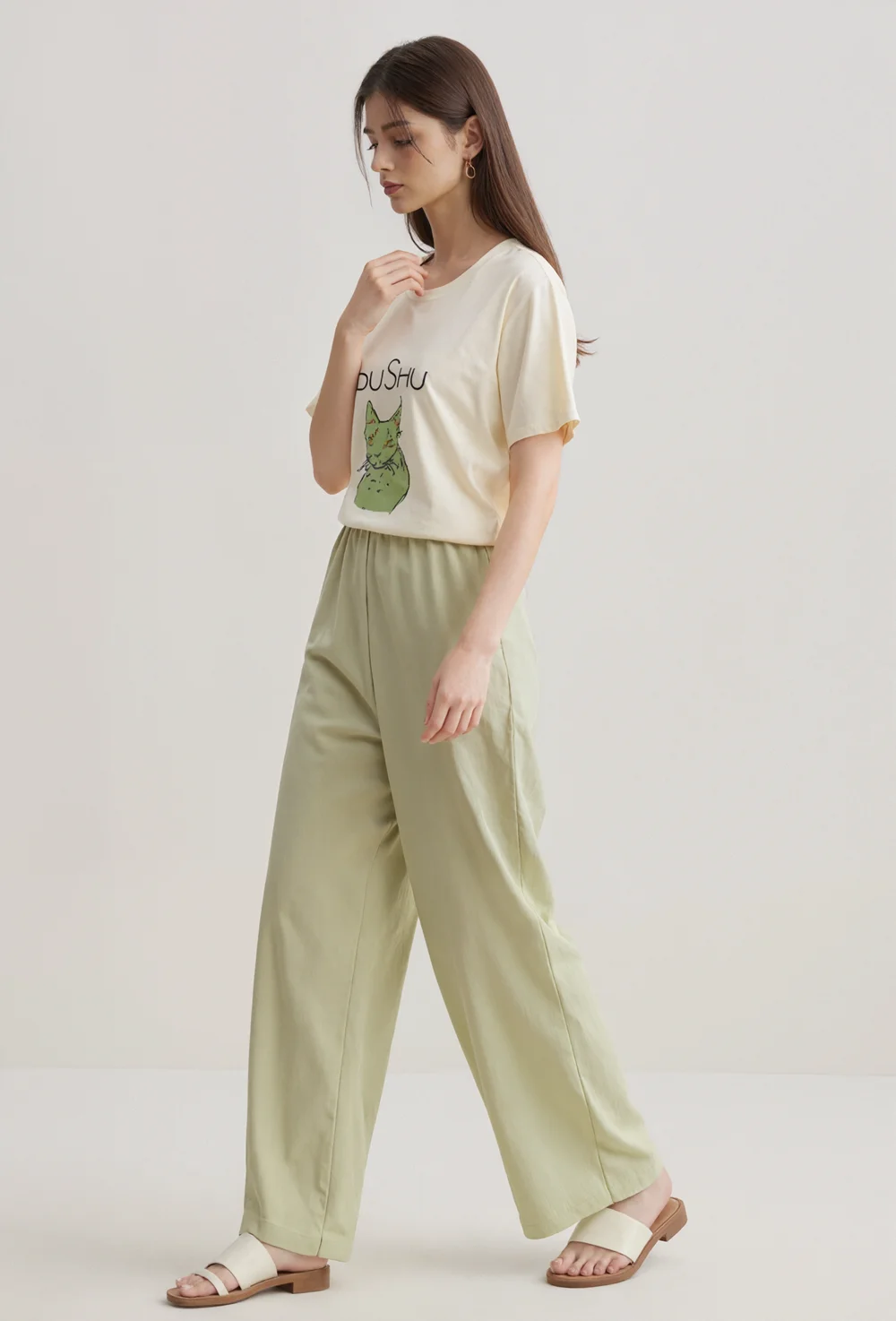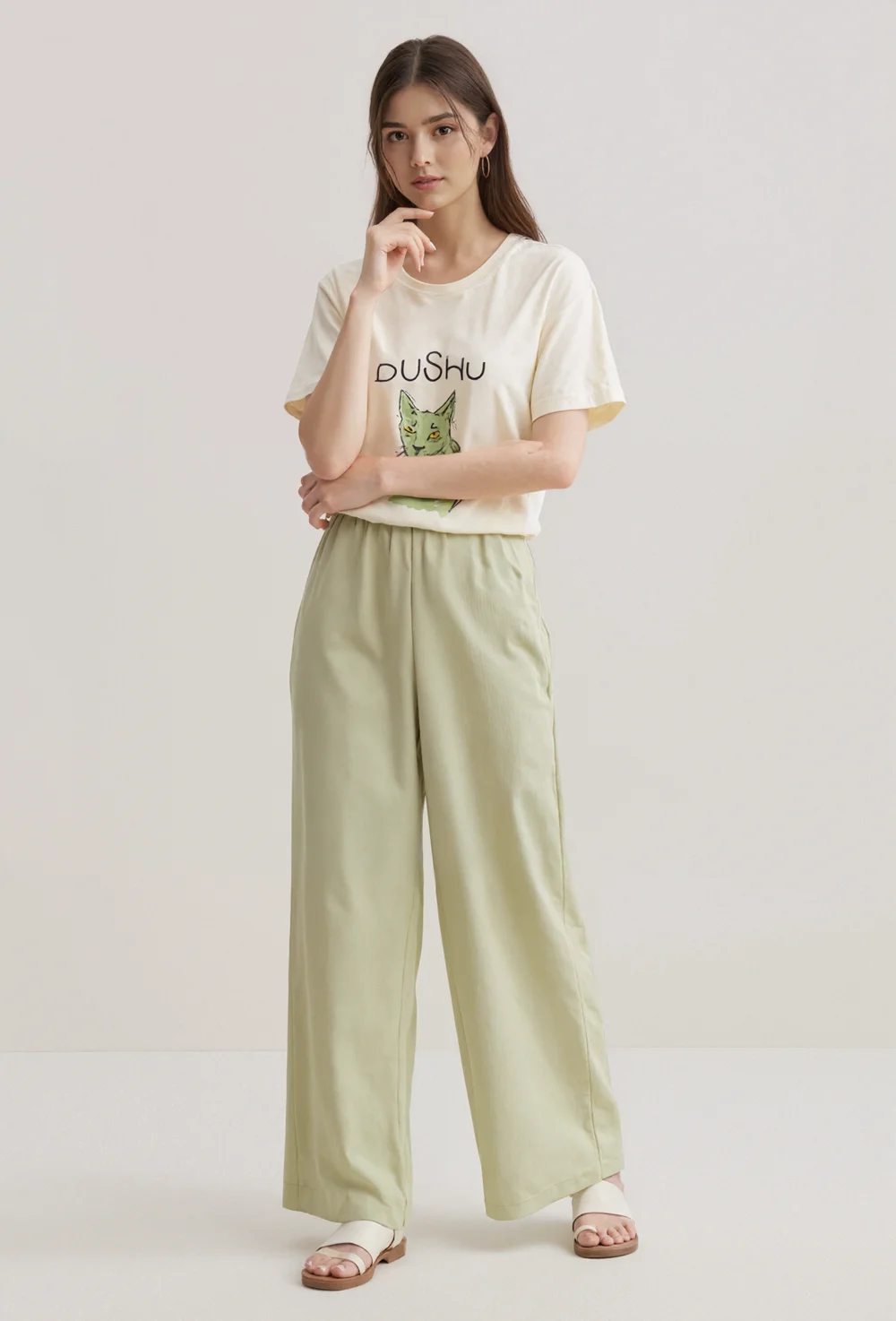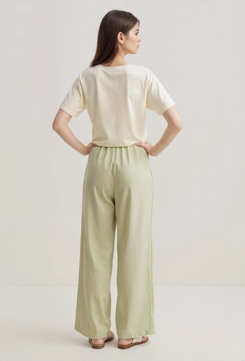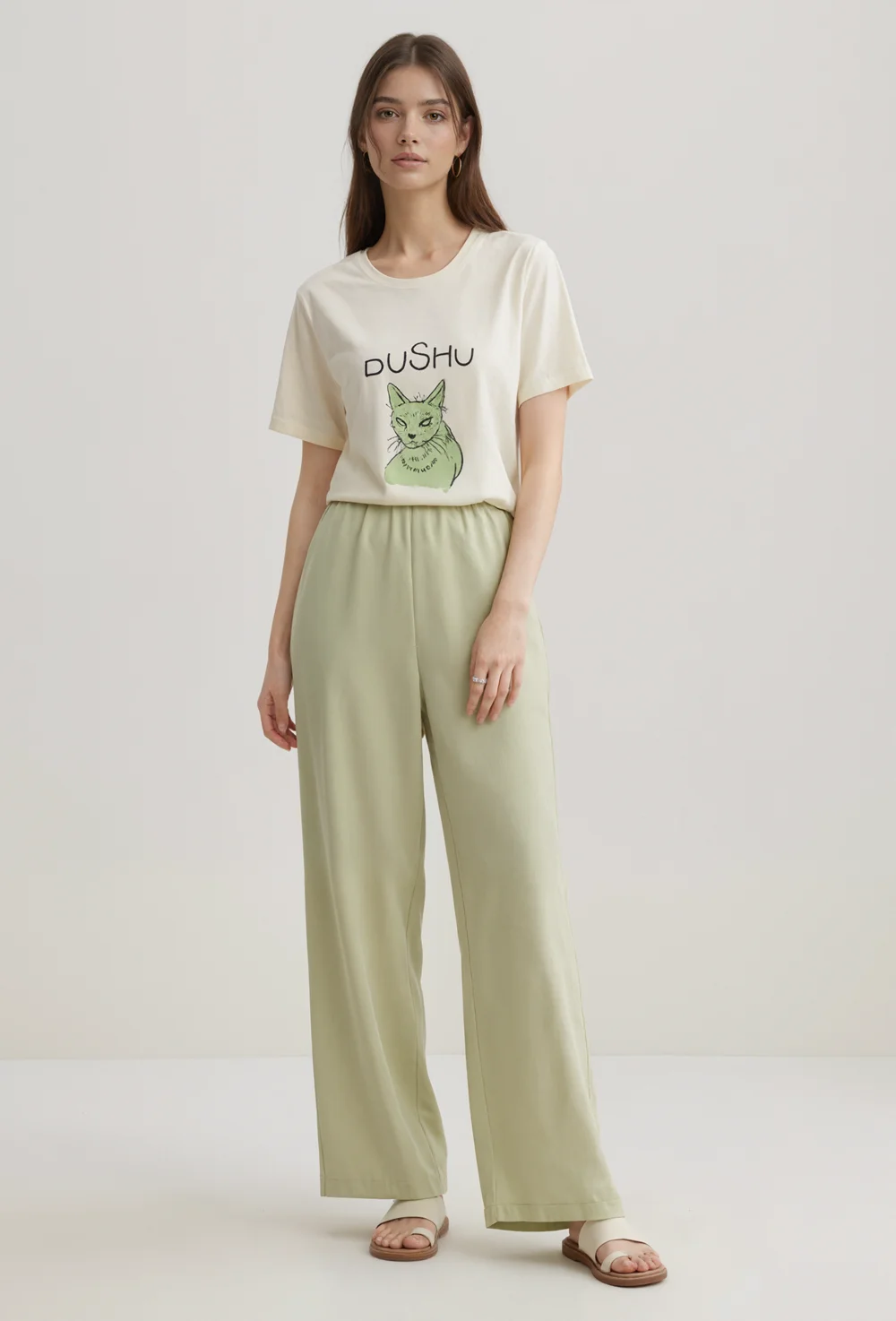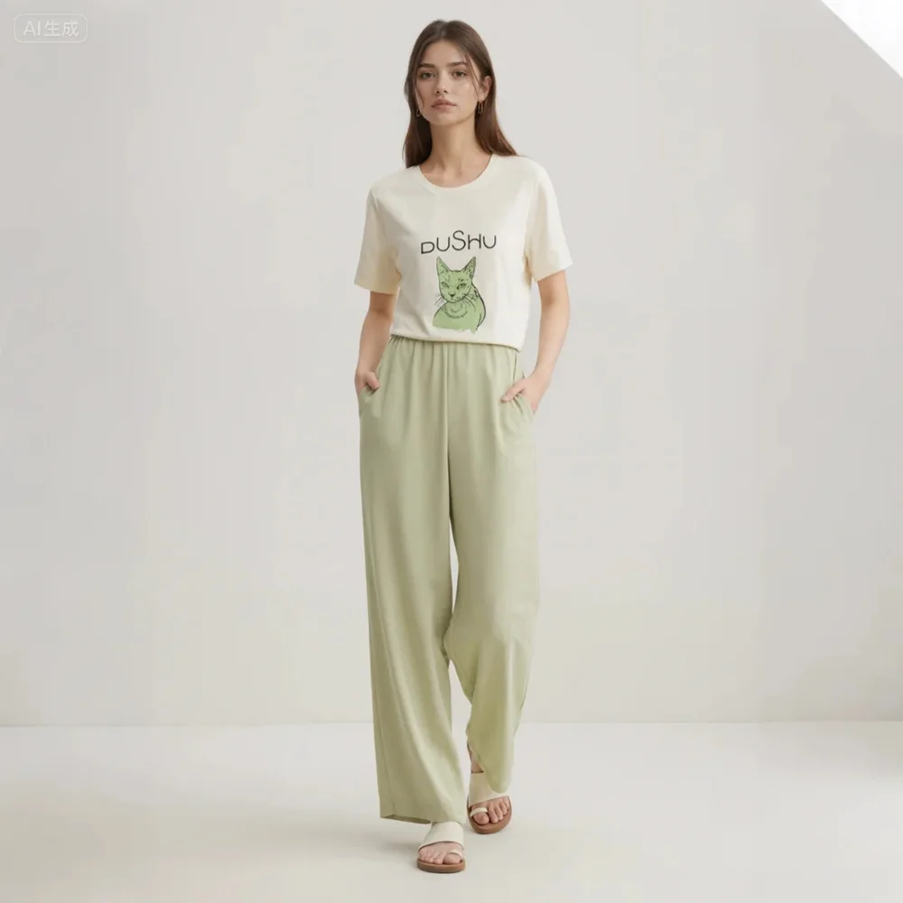 High Quality Casual Women Work Long Pants for Lady High Waisted Wide Leg Loose Lightweight Recycled Poly Trousers with Pockets